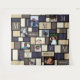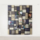 A modern chic geometric colour block design tapestry in a neutral coastal colour theme featuring your 10 photo collage and monogram. Personalise this stylish wall hanging with your monogram initial and name artfully arranged across the colour blocks in a neutral colour palette of Soybean [tan] Eclipse [navy blue] Sweet Corn [off white] and Brown Granite [deep grey] on classic black. On trend for Spring 2019 this colour combo evokes the spirit of coastal beach sands and nautical waters. This 10 photo tapestry is a beautiful way to showcase your favourite family, pet, Instagram photos or memorable pictures of your experiences. Update your home decor, warm up the dorm room or create a thoughtful personalised gift for someone special with this unique "Coastal Calm" colour block photo fabric wall art.