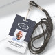 A modern and simple badge that does not distract from the important details. Easy to read from afar. Add a custom logo and company details. Add the employee's name, photo, and professional title. The bar of colour can be modified to match the company's official colours. At the back, add more information such as return address and the employee's ID number. Perfect for oval shaped logos.