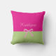 Wrap up your room decor with a cute bow on a decorative throw pillow! This design features colour blocking with a bow and ribbon to tie it all together. One side features your name in script, and on the other side your monogram initial. Edit the template to customise these throw pillows and turn your dorm room or sorority house decor into something truly special.