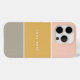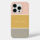 A stylish colour block iPhone case with 3 horizontal stripes in blush pink, mustard gold and grey in a modern minimalist design style. The text can easily be customised with your name for the perfectly personalised gift or accessory!