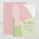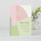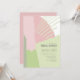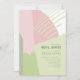 Abstract colour blocking in a cheerful colour palette of rose pink and spring green provides a striking background for the pieces in this contemporary wedding suite. The wedding bridal shower invitation shown here is perfect for a modern spring wedding. Easily add all your event details using the provided template. Search ID740 to see other colour options and additional products with this design.