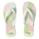 Abstract colour blocking in a cheerful colour palette of rose pink and spring green provides a striking background for the pieces in this contemporary wedding suite. The flip flops for the bride shown here have the optional text 'MRS' in a bold modern font style. Easily adapt for everyday use by adding a name or monogram to replace the supplied text image. Search ID740 to see other colour options and additional products with this design.