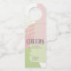 Abstract colour blocking in a cheerful colour palette of rose pink and spring green provides a striking background for the pieces in this contemporary wedding suite. The bottle tag shown here makes a perfect addition to your party supplies for a modern spring wedding. Add a personal 'Cheers' message, your initials and wedding date using the provided template. Search ID740 to see other colour options and additional products with this design.