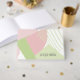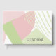 Abstract colour blocking in a cheerful colour palette of rose pink and spring green provides a striking background for the pieces in this contemporary wedding suite. The wedding guest book shown here is perfect for the bride who is planning a modern spring wedding. Easily Add the bride and groom's names and wedding date using the provided template. Search ID740 to see other colour options and additional products with this design.