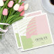 Abstract colour blocking in a cheerful colour palette of rose pink and spring green provides a striking background for the pieces in this contemporary wedding suite. The wedding paper napkin shown here adds the perfect splash of colour for your modern spring wedding. Add a personal thank you message, your initials and wedding date using the provided template. Search ID740 to see other colour options and additional products with this design.