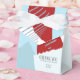 Abstract colour blocking in a cheerful winter colour palette of blues and brick red provides a striking background for the pieces in this contemporary wedding suite. The wedding favour box shown here is perfect for the bride who is planning a modern winter wedding. Add a personal thank you message, your initials and wedding date using the provided template. Search ID740 to see other colour options and additional products with this design.