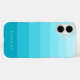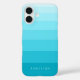 Chic, simple monochromatic colour blocks or stripes in shades of aqua blue and personalised with a name, monogram or your custom text in your choice of font styles. OPTIONS: The sample is shown in the iPhone 16 model and Barely There case style--other phone models and case style are shown on the ordering page. ASSISTANCE: For help with design modification or personalisation, colour change, resizing, transferring the design to another product or if you would like coordinating items, contact the designer BEFORE ORDERING via the Zazzle Chat MESSAGE tab below or email makeitaboutyoustore@gmail.com.