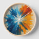 Make every moment vibrant with this modern wall clock featuring a stunning abstract splash of colour. The dynamic design blends cool blues with warm oranges and yellows, radiating from the centre like an explosion of creativity. Framed in natural wood and finished with minimalist white hands, this clock is both functional and artistic.