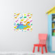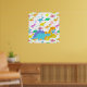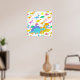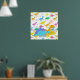 Colour Cartoon Dinosaurs Poster. Three cute little dinosaurs: blue Stegosaurus, orange Diplodocus and yellow Triceratops and a colour dinosaurs pattern (Stegosaurus, T+Rex, Triceratops and Parasaurolophus) background poster print. This sweet dinos cartoon poster is fully customisable, add your texts and images! A happy colour dinosaurs cartoon poster gift!