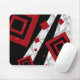 Classy, sophisticated, and fun, this red black and white geometric design features squares, triangles, and an interesting pattern. Design is colourful, vibrant, and active.