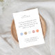 This modern pastel dots dress code insert card, features 5 editable colour options against a white background and the option to include a wedding website address. Customise to make it your own. Use Zazzle's own EDIT Tool to change the colour of each dot to suit your preference.