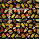 Seamless pattern of coloured fast food icons. Seamless pattern. Custom background colour.