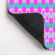 A mouspad with a colourful geometric pattern in magenta, blue, yellow.