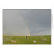 A llama guards sheep under a rainbow.