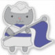Do you like cats? Do you like cute stickers? This sticker has a grey cat dressed in a blue and white marching band uniform while holding a blue flag.