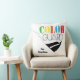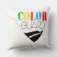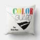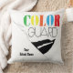 Colour Guard Throw Pillow. Text reads with script "Love", colourful "Colour" and Bold "Guard". Available in a variety of shapes and sizes. Add custom text for School Name and Year. Design by Jenn's Emporium.