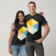 An attractive simple six sided hexagon divided into 6 segments in a palette of five harmonious colours.