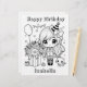 Cute little birthday girl with her balloons, kitten and gifts. Black and white simple and easy colouring page for kids at a birthday party or just for fun.