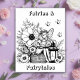 Fairy tale themed colouring page. Children or adult colouring page with a pretty fairy reading a book in a batch of big flowers next to a lantern.