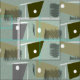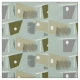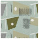 Mid-Century Modern boomerang fabric in grey and teal on an avocado green background. Classic mid-century intersecting lines and star pattern.