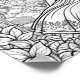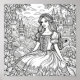 Colouring poster in a fairytale theme. A pretty princess in a gorgeous flowing gown in front of castles. Adult colouring poster cute for kids, teens or adults.