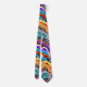 An tie case with a colourful abstract design made up of a mix of swirling wavy colours.