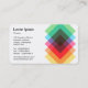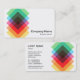 A business/profile card template with a geometric motif made up of five overlaying colour diamonds creating different colours and tones. Company name and business type on the front balanced with the motif on the left. Name an all other contact on the reverse with the motif on the right. Ready to be customised with your details, suitable for many types of business.