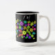 A colour pop of cute flowers on a black background - fun and cheerful. Personalise with your initials.