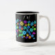 A colour pop of cute flowers on a black background - fun and cheerful. Personalise with your initials.