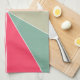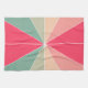 A design with 12 x 30 degree segments each divided with a white line and in a palette of 5 colours with adjoining segments at the top and bottom using the same colour creating symmetry.