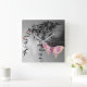 Add some character to a room with this custom 10.75" square acrylic wall clock. This clock face features a moody monochrome still life photograph and a colour splash. The monochrome element of the photograph shows a terra cotta pot on a shelf, plant leaves, and wall. The colour splash features orange goldfish flowers on the plant and a pink and peach butterfly decoration hanging from the shelf. Click "Customise" to add text in a typeface style, size, and colour you prefer. Photograph ©Patricia AZ Phillips