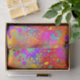 A digital graffiti abstract in fun shades of orange, yellow, pink, red, purple, green, teal, blue, lime green and black.