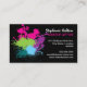 © 2013 Socialite Designs. Represent your professional makeup artist designation with this colourful swirl and colour splash business card. All design elements can be moved or resized.