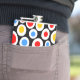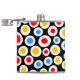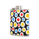An original abstract design made up of many rounded white spots on a black background each with a colour centre in either red, blue, or amber yellow. This pattern design uses a large high resolution seamless pattern tile image allowing the pattern to be made larger, or smaller.