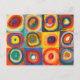 Wassily Kandinsky’s Colour Study: Squares with Concentric Circles is a vibrant exploration of colour and form, featuring a grid of squares filled with concentric circles in an array of bold and contrasting hues. Each square contains unique colour combinations, creating a visual rhythm and harmony that captures Kandinsky’s fascination with the emotional power of colour. This study exemplifies his abstract style, emphasizing the impact of colour arrangement and shape over representational imagery, and invites viewers to experience the interplay of colours on a purely sensory level.