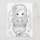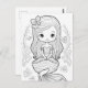 Colour Your Own Mermaid Black Line Drawing Postcard