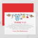 Elegant BABY SHOWER thank you card with baby clothes in several colours.