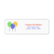 A colourful Return Address Label stickers with coloured balloons to add to your envelopes or packages when you send invitations to a birthday party or a housewarming party, a baby shower, a retirement pot, etc.