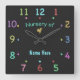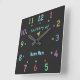 Customise a fun analogue clock with bright coloured numbers and dots and a little bird for a nursery or daycare. If you want different wording or a different animal, send a note and I'll create another clock style!