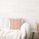 This throw pillow has a design of coneflowers scattered about the design in yellow, orange, pink, and purple on a field of white.