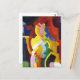 A fine art postcard with the painting by the German Expressionist artist August Macke, Coloured Forms III (1913). A multi-coloured geometric abstract influenced by cubism in the colours of red, yellow, and blue.
