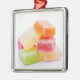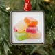 Photograph of a group of jelly square gummy sweets of several flavours: orange, melon, strawberry, mint and red, yellow, orange and green colours. Children will love it.