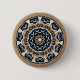 Coloured intricate mandala pattern design button in beige and dark blue colours