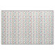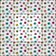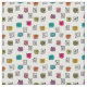 This fabric has a mid-century modern design of scattered mazes, some with coloured blobs under them.