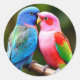 Colourful parrots perched together, demonstrating warmth and connection against a vibrant green background. Their bright hues of blue, pink, and green symbolise nature's captivating beauty and the harmony of wildlife.