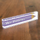 Stylish school teacher's desk nameplate, with graphics of a large purple coloured pencil.  Custom white text is ready to personalise.  Makes a great gift idea.