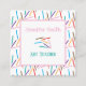 Double-sided white square business cards with scattered coloured pencils . Designed for art teachers , substitutes or any other educators .