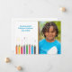 A cute photo card to announce your child's graduation from pre-school, kindergarten or grade school. Design features a border of coloured pencils on white background. The photo frame has a rainbow border. Just upload your special image and customise the text for a special memento.