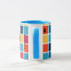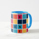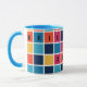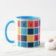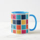 Colourful squares with crossword puzzle design. Cooking Techniques, displayed on a chequered pattern of bright, beautiful colours. Fun and interesting mug for the kitchen. Text place for name customisation. Part of the Plethora of Patterns Collection.