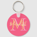 Trendy Magenta Modern Monogram Name Key Ring